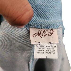 This whimsical vintage denim trench coat is a one-of-a-kind masterpiece, featuring colorful sequined hot air balloons floating amongst hand-painted cloud appliques. The light blue denim fabric is adorned with intricate bead and fringe detailing, while silver-tone metal buttons and stud accents add a touch of glamor. Rolled cuffs and a longline silhouette create a laid-back yet statement-making piece. Perfect for those who love artistic, playful vintage styles.