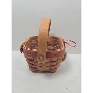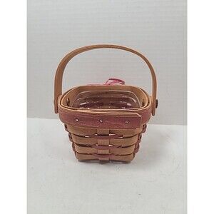 The Vintage Longaberger 1995 Small Berry Basket Heart Sentiments Tie On is a charming collectible basket made of wood with a brown finish. Featuring a square shape and intricate heart pattern, this small basket was manufactured in the United States in 1995 by the renowned brand Longaberger. Perfect for all occasions, this country-style piece is a unique addition to any collection, offering a touch of nostalgia and classic craftsmanship from the 1990s. To clean, simply use a damp cloth, and enjoy this original, handcrafted item that showcases the art of weaving. Bin 116