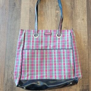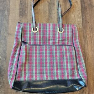 Vintage Longaberger Homestead Red Green Plaid Tote with Matching Wallet