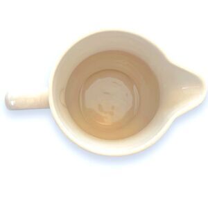This lovely vintage pitcher is in excellent condition. There are no chips or cracks. It is ivory or off-white with a dainty blue design. The pitcher itself is quite hefty and substantial. It’s perfect for summer picnics or winter egg nog! It’s approximately 7 1/2” tall and 6 1/2” wide at the mouth.