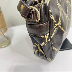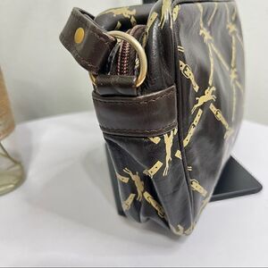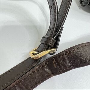 Vintage Longchamp Paris brown shoulder bag with an adjustable strap and zip closure. There is a zip pocket on the back.