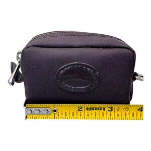 This compact Longchamp makeup bag, crafted in nylon, offers durability and style. Its sleek design easily fits into handbags, providing organized storage for beauty essentials. With a secure zip closure, it ensures your items remain safe. Ideal for those who value both elegance and functionality in their accessories.