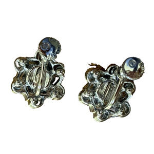 These vintage Longcraft earrings are a beautiful addition to any jewelry collection, featuring silver tone settings and light blue Aurora Borealis finish rhinestones in a round shape. With screw back closures, these elegant earrings are perfect for women who appreciate retro style and beauty. Signed by Longcraft, these timeless earrings have a touch of romance and sophistication, making them a statement piece for any outfit. Perfect for those who appreciate classic and stylish vintage jewelry, these earrings are a unique and original choice for those looking to add a touch of glamour to their ensemble. In good vintage condition - ready to wear!