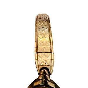 • Band: Matching gold-tone stretch bracelet with chevron/zigzag Art Deco etching