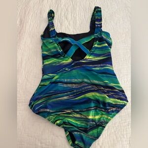 Vintage Longitude Swimsuit Blue/Green cross back. Size 10