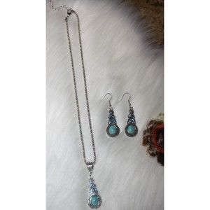 Vintage Look Women's Necklace & Earring Set Turquoise Silver Filigree Dangle NWT