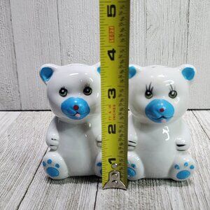 Vintage Loomco Salt and Pepper Shakers Teddy Bears Blue White 1992