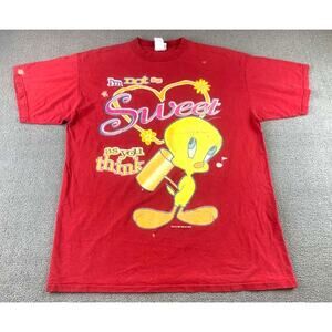 Vintage Looney Tunes 1996 Men's Size XL Red Tweety Graphic T Shirt As Sweet As