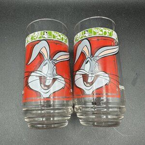Vintage Looney Tunes Bugs Bunny Tumbler Drinking Glasses Lot of 2 14oz 1999
