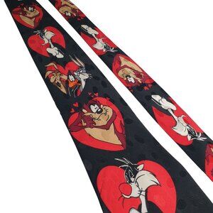 Vintage Looney Tunes Character Silk Necktie Coyote Daffy Bugs Taz Valentine