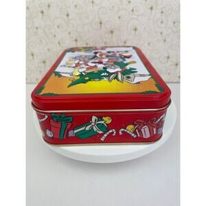 This vintage tin features the Looney Tunes characters dressed for the holidays and surrounded by Christmas decor.