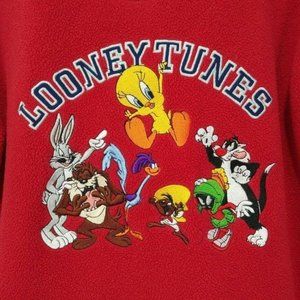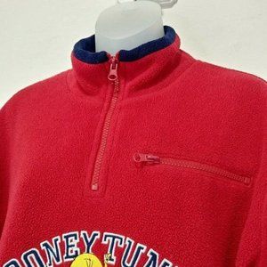 Vintage Looney Tunes Embroidered Red Fleece Pullover Sz Medium Warner Br…