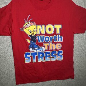Vintage Looney Tunes Large T-Shirt Tee Short Sleeve Tweety Bird Not Worth Stress
