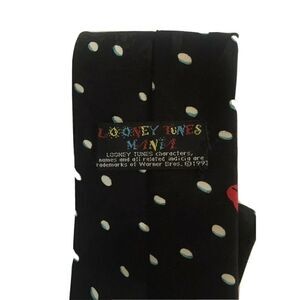Vintage Looney Tunes Mania Christmas Tie Sleigh Taz Santa 1993 Polyester Black