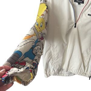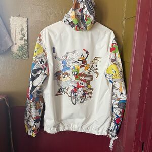 Looney Tunes Members Only jacket men’s size Med. pop over style. 3/4 zip front. Zippered side at bottom as well . Elastic at bottom and cuffs. Small chest pocket. In great shape. No rips tears stains and all applications are in tact.