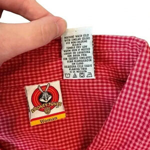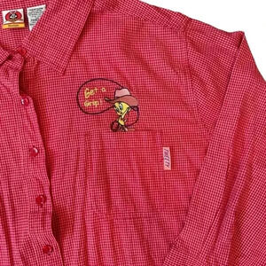 Vintage Looney Tunes Red Gingham Check 'GET A GRIP' Cowboy Western Shirt Top