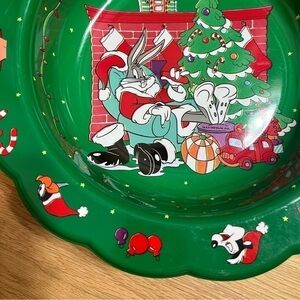 Vintage Looney Tunes Santa Party Server Bowl Christmas Bugs Bunny Pepe Le Pew