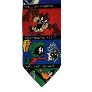 With accents that highlight the pattern and a vintage look, this tie is a must-have for any Looney Tunes enthusiast. It was produced in 1997 as part of the United States Postal Service's stamp collection and is an excellent addition to any collection. Whether you're dressing up for a special occasion or adding to your Looney Tunes memorabilia, this tie is the perfect choice.