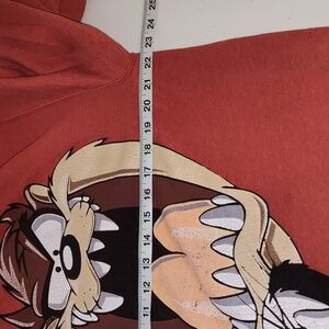 it is in pre-owned condition the sweatshirt itself is in very good shape but bugs and Taz have a lot of cracking I showed some of the worst of it in the pictures but the whole thing is cracking it does not have its size tag I'm assuming it to be a medium I did add measurements to the listing please look at them if you have any questions please ask has always I love offers rs92