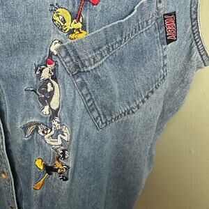 Vintage Looney Tunes Tweety Bird Denim Sleeveless Shirt | 90s Cartoon Tee
