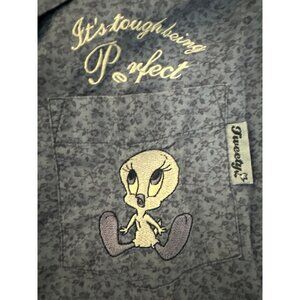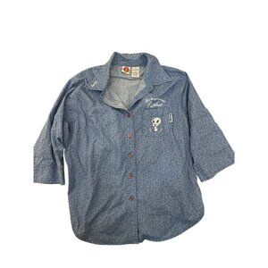 Vintage Looney Tunes Tweety Bird Womens Floral Embroidered Denim Shirt L Button