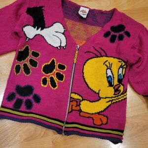Vintage Looney Tunes Tweety Bird Zip Up Sweater 1997 Size 7/8