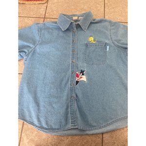 Tweety bird and sylvester Blue Button front shirt