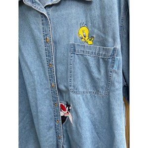 Vintage Looney Tunes Warner Brothers Womens Blue Button Down Shirt Sz 22W