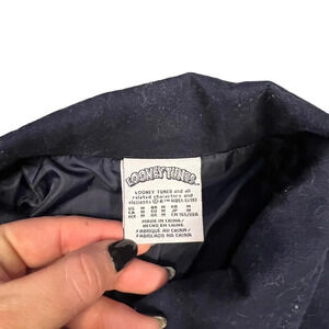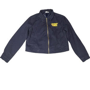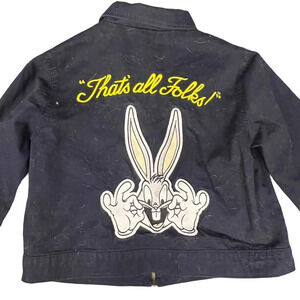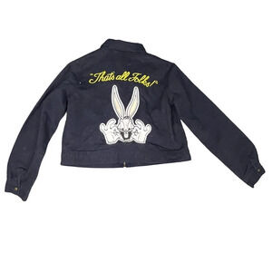 Vintage Looney Tunes Women's Medium "That's All Folks" Black Bomber Jean Jacket