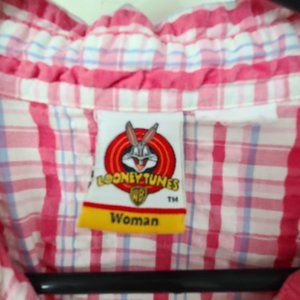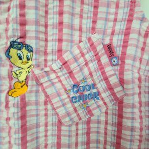 Vintage Looney Tunes Women’s Sleeveless "Tweety Cool Chick" Button Up Plaid