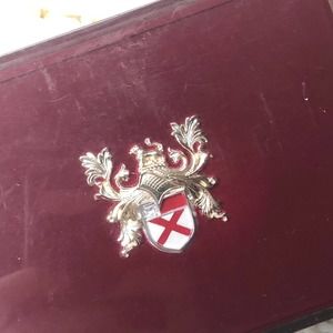 • box is lucite with shield design