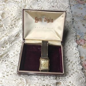 • vintage Lord Elgin gold tone wrist watch with original case