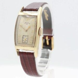 Vintage Lord Elgin Tonneau Deco Men's Mechanical Wristwatch 14k Gold Filled