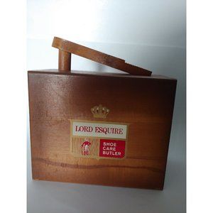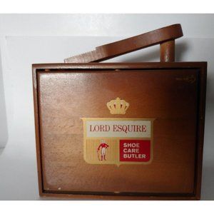 VINTAGE USED Lord Esquire Wooden Shoe Box and 2 Brushes
