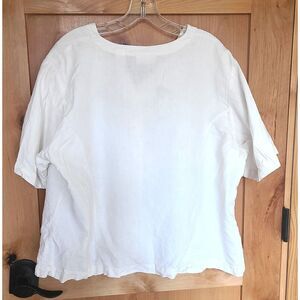 Vintage Lord & Taylor 100% Linen White Blouse Top Short Sleeve V Neck Button Up