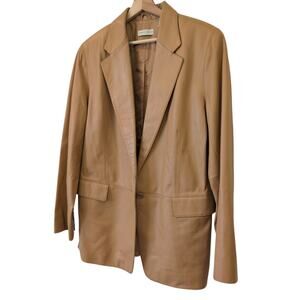 Vintage Lord & Taylor Camel Brown Leather Blazer Jacket Size 16 - Beautiful!