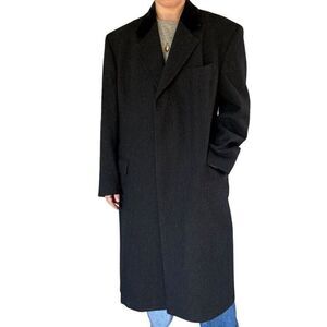 Vintage Lord Taylor Kensington Collection Gray Wool Trench Coat Velvet Collar 42