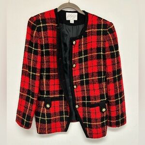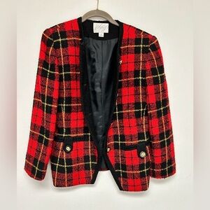 Vintage Lord & Taylor Red Gold Black plaid patterned Women’s Blazer size 6