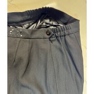 Size 8, very pretty pants! Can be worn to work, at the holidays, or even as evening wear. Detailed waistband, partially elastic waist, & fully lined (common in vintage dress pants from the 80s–90s).