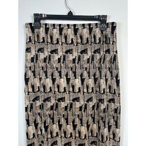 Vintage Lori Weidner Skirt Size 10 Womens Midi Abstract Stretch Ribbed Black Tan