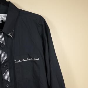 Vintage Lori Zoni Black Jeweled Long Sleeve Button-Up Shirt Size L