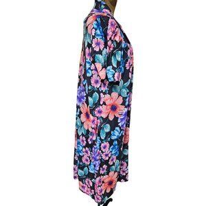 Vintage Lorraine Floral Button Down House Dress S Polyester Short Sleeve USA