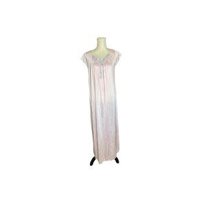 Vintage Lorraine Peignoir Set | Blush Pink Satin Nightgown & Robe | 1980s Embroi