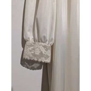 Vintage Lorraine Robe Womens Cream Nylon Lace Emb Collar Button Up L Cottagecore