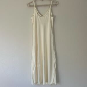 Lorraine Ivory / Cream Full slip, maxi dress, nightgown Nylon Adjustable spaghetti straps, lace trim, v-neckline 70s 80s Made in USA undergarment bridal slip, white slip, formal slip Coquette, indie, cottagecore, romantic, classic, pin-up, hollywood glam