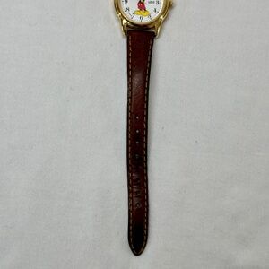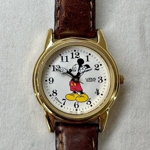 Vintage Lorus Mickey Mouse Disney Quartz Watch Gold Tone Brown Leather V501-0A70