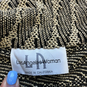Vintage Los Angeles Womens 1x Cardigan Metallic Knit Gold Black Retro Artsy
