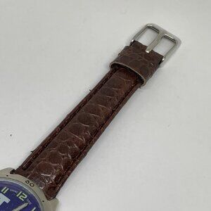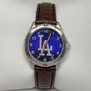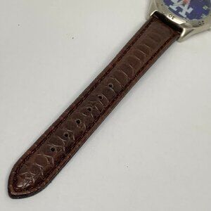Vintage Los Angeles women’s game time quartz analog watch 28mm silver tone case brown Lea band , in good used condition battery installed