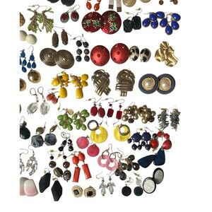 Vintage Lot 125+ Pair Pierced Earrings Clip Hoop Dangle Stud Statement Retro