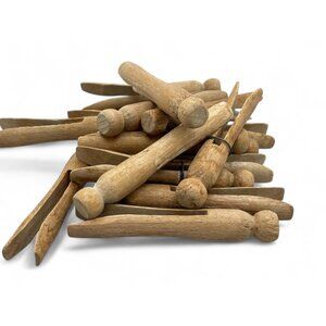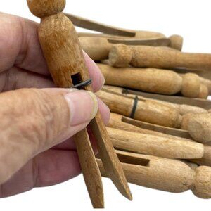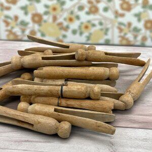 Collection of 16 vintage round wooden clothespins. Measure 4 in length and 5/8 in width at the top. Condition is very good. Well made clothes pins. Suitable for use on the line or crafting.